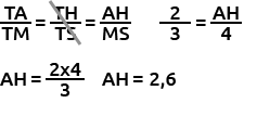 D’après le théorème de Thalès [AH] mesure 2.6cm.